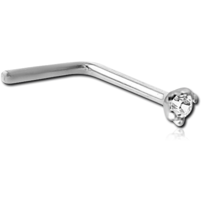 18 KARAT GOLD WHITE 90 DEGREE NOSE STUD WITH 1.35MM PRONG SET DIAMOND