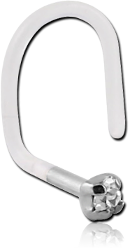 BIOFLEX® INTERNAL CURVED NOSE STUD WITH STERLING 925 SILVER PRONG SET JEWELED ATTACHMENT