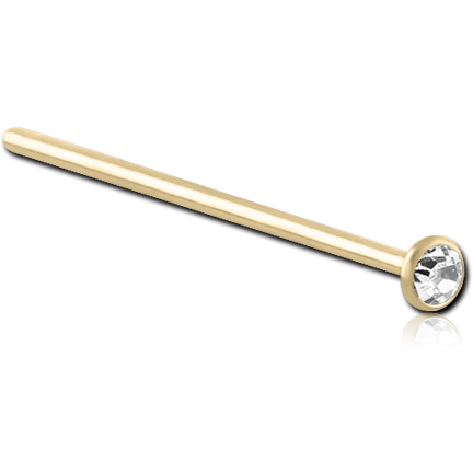 ZIRCON GOLD PVD COATED SURGICAL STEEL GRADE 316L PREMIUM CRYSTAL JEWELED STRAIGHT NOSE STUD 15MM