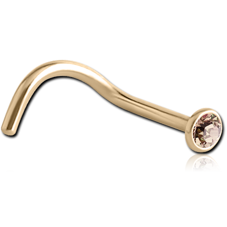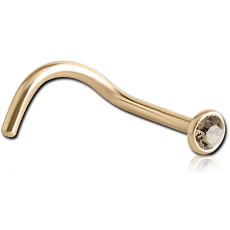 ZIRCON GOLD PVD COATED SURGICAL STEEL GRADE 316L JEWELED CURVED NOSE STUD