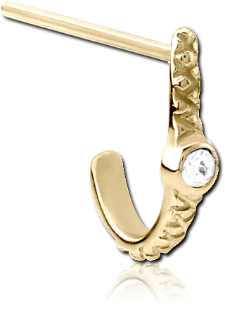 ZIRCON GOLD PVD COATED SURGICAL STEEL GRADE 316L STRAIGHT JEWELED WRAP AROUND NOSE STUD