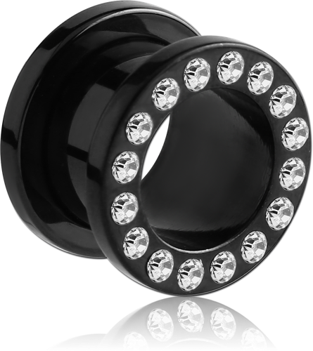 BLACK PVD COATED STAINLESS STEEL GRADE 304 JEWELED THREADED TUNNEL