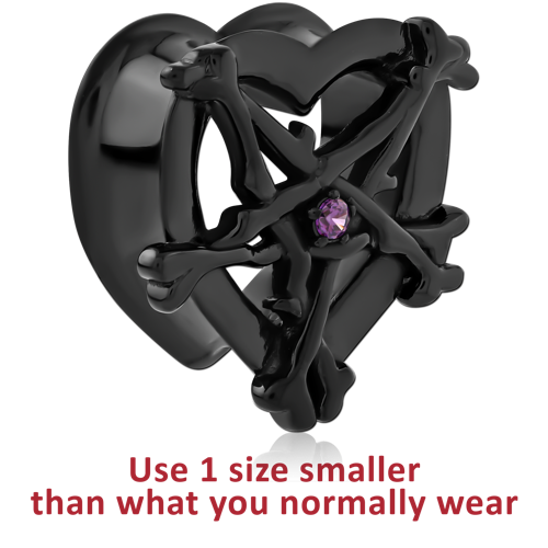 BLACK PVD SURGICAL STEEL GRADE 316L HALF TUNNEL WITH 10X10 MM HEART SHAPED