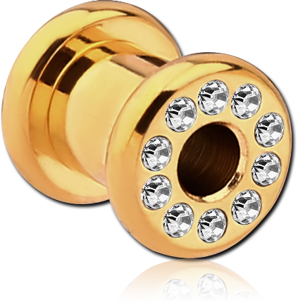 GOLD PVD COATED SURGICAL STEEL GRADE 316L JEWELED ROUND-EDGE THREADED TUNNEL