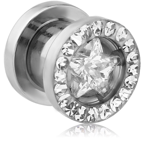 SURGICAL STEEL GRADE 316L JEWELED ROUND-EDGE THREADED TUNNEL WITH STAR
