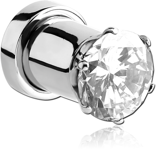 SURGICAL STEEL GRADE 316L PRONG SET JEWELED THREADED TUNNEL