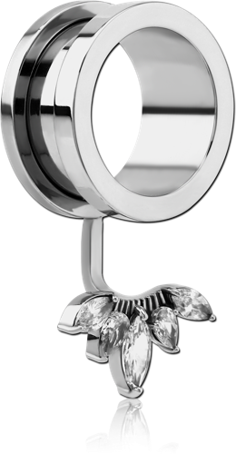 STAINLESS STEEL THREADED TUNNEL WITH SURGICAL STEEL GRADE 316L JEWELED TOP