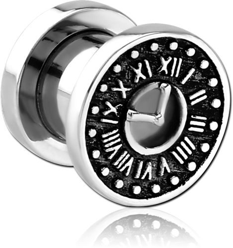 SURGICAL STEEL GRADE 316L THREADED TUNNEL - VINTAGE ANALOG CLOCK