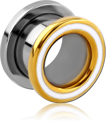 STAINLESS STEEL THREADED TUNNEL WITH TWO TONE SURGICAL STEEL GRADE 316L TOP