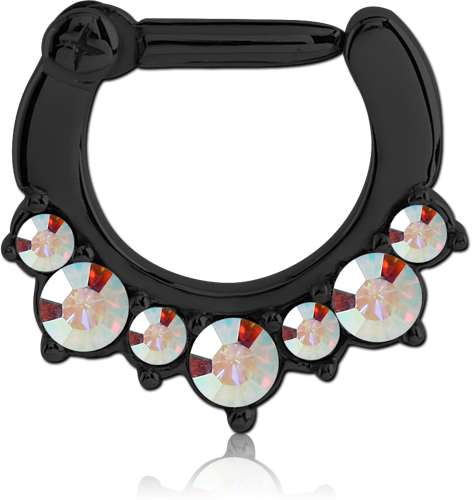 BLACK PVD COATED SURGICAL STEEL GRADE 316L ROUND VALUE JEWELED HINGED SEPTUM CLICKER