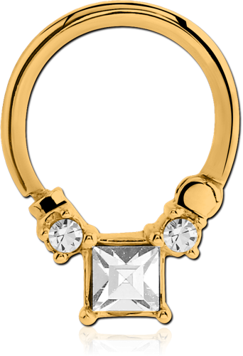 GOLD PVD COATED SURGICAL STEEL GRADE 316L PREMIUM CRYSTAL JEWELED HINGED SEPTUM CLICKER