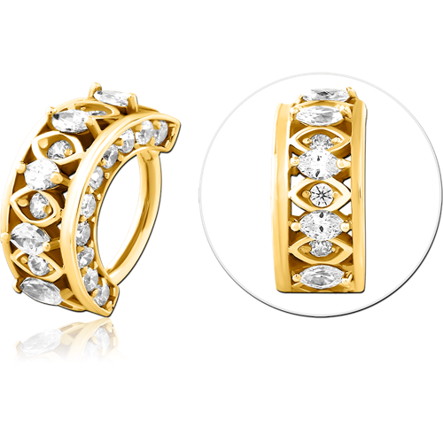 GOLD PVD COATED SURGICAL STEEL GRADE 316L JEWELED HINGED SEPTUM CLICKER RING