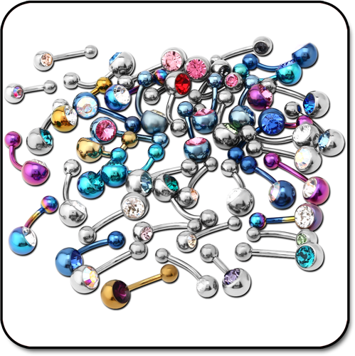 VALUE PACK OF MIX TITANIUM ALLOY JEWELED NAVEL BANANAS