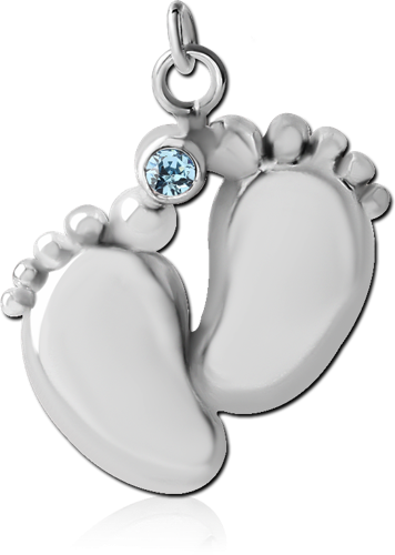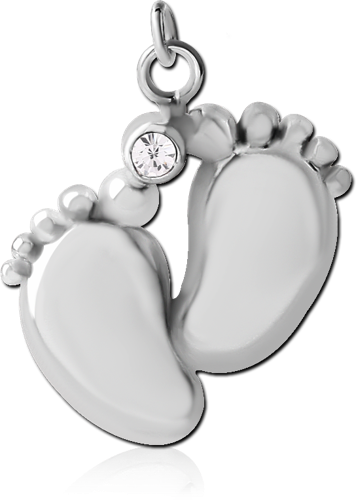 STERILE RHODIUM PLATED BASE METAL JEWELED CHARM - BABY FEET