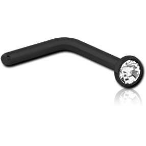 STERILE BLACK PVD COATED SURGICAL STEEL GRADE 316L PREMIUM CRYSTAL JEWELED 90 DEGREE NOSE STUD
