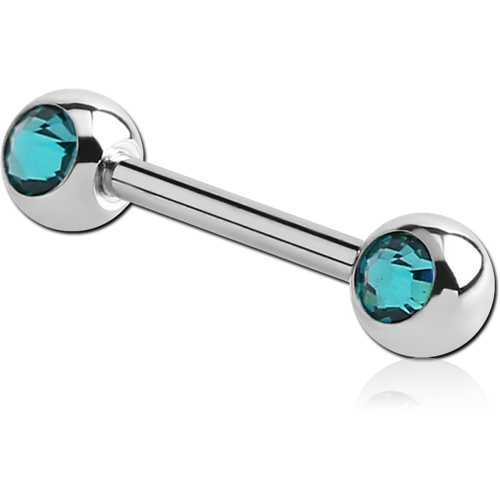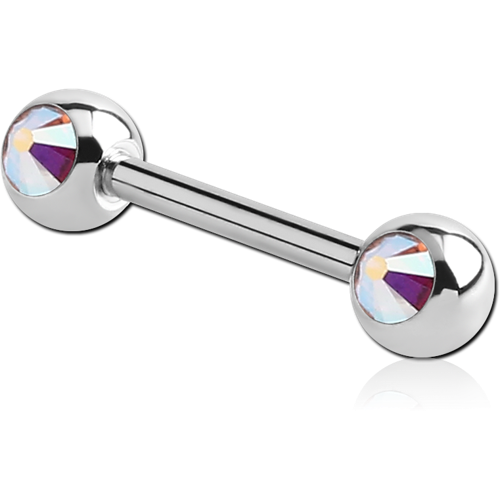 STERILE SURGICAL STEEL GRADE 316L DOUBLE SIDE PREMIUM CRYSTALS JEWELED NIPPLE BARBELL