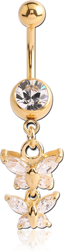 STERILE GOLD PVD COATED SURGICAL STEEL GRADE 316L JEWELED NAVEL BANANA WITH BUTTERFLY CHARM