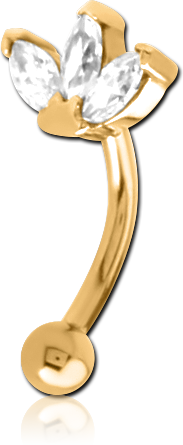 STERILE GOLD PVD COATED SURGICAL STEEL GRADE 316L JEWELED FANCY CURVED MICRO BARBELL - TRIPLE
