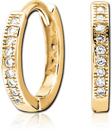 STERILE GOLD PVD COATED SURGICAL STEEL GRADE 316L JEWELED HUGGIES PAIR