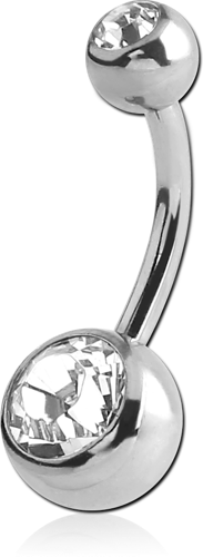 STERILE SURGICAL STEEL GRADE 316L INTERNALLY THREADED DOUBLE PREMIUM CRYSTAL JEWELED NAVEL BANANA