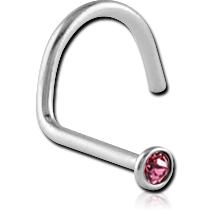 STERILE SURGICAL STEEL GRADE 316L LARGE CURVE JEWELED NOSE STUD