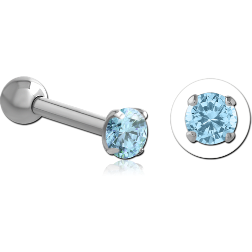 STERILE SURGICAL STEEL GRADE 316L ROUND PRONG SET JEWELED TRAGUS MICRO BARBELL