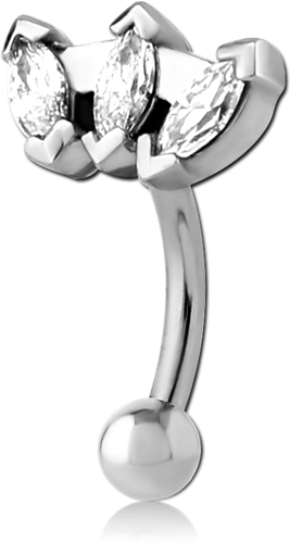 STERILE SURGICAL STEEL GRADE 316L JEWELED FANCY CURVED MICRO BARBELL - TRIPLE GEM