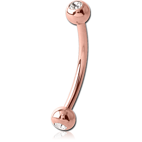 STERILE ROSE GOLD PVD COATED SURGICAL STEEL GRADE 316L DOUBLE JEWELED CURVED MICRO BARBELL