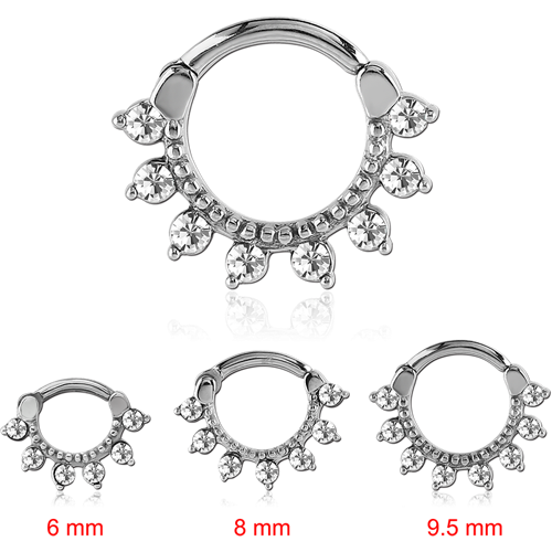STERILE SURGICAL STEEL GRADE 316L ROUND JEWELED HINGED SEPTUM CLICKER RING