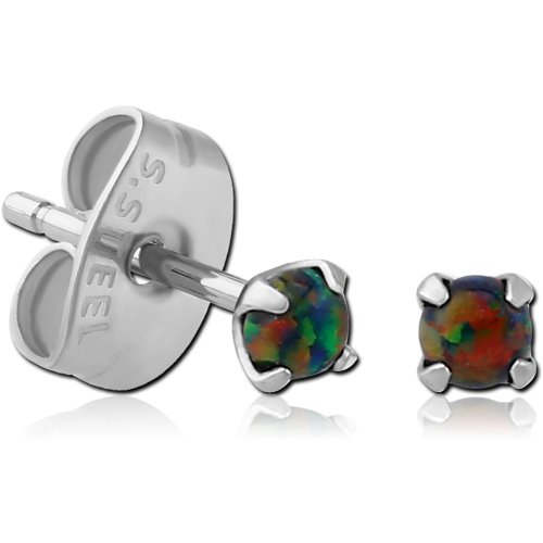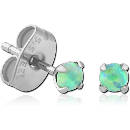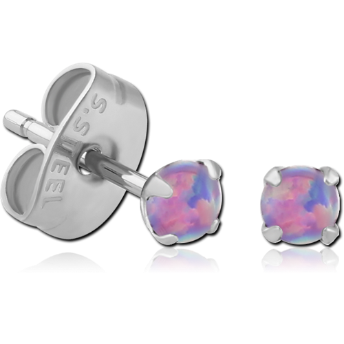 STERILE SURGICAL STEEL GRADE 316L ROUND SYNTHETIC OPAL PRONG SET JEWELED EAR STUDS PAIR