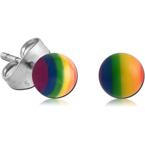 STERILE PAIR OF UV POLYMER RAINBOW BALL EAR STUDS