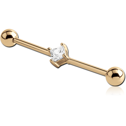 STERILE ZIRCON GOLD PVD COATED SURGICAL STEEL GRADE 316L SQUARE JEWELED INDUSTRIAL BARBELL