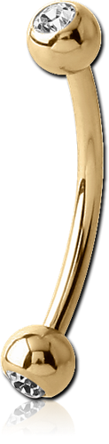 STERILE ZIRCON GOLD PVD COATED SURGICAL STEEL GRADE 316L DOUBLE JEWELED CURVED MICRO BARBELL