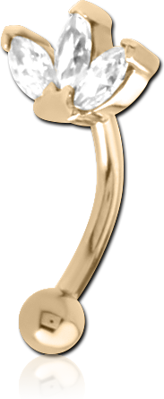 STERILE ZIRCON GOLD PVD COATED SURGICAL STEEL GRADE 316L JEWELED FANCY CURVED MICRO BARBELL - TRIPLE