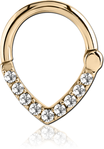 STERILE ZIRCON GOLD PVD COATED SURGICAL STEEL GRADE 316L ROUND JEWELED HINGED SEPTUM CLICKER