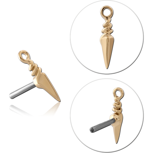 14K YELLOW GOLD SOLID ATTACHMENT TITANIUM ALLOY THREADLESS PIN