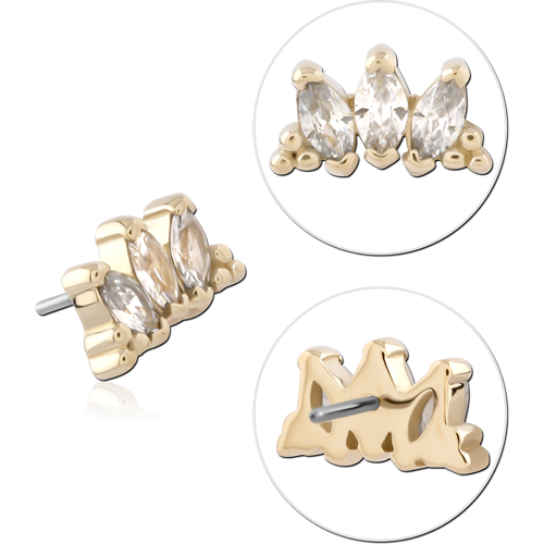 14 KARAT GOLD YELLOW JEWELED ATTACHMENT TITANIUM THREADLESS PIN