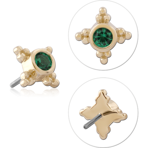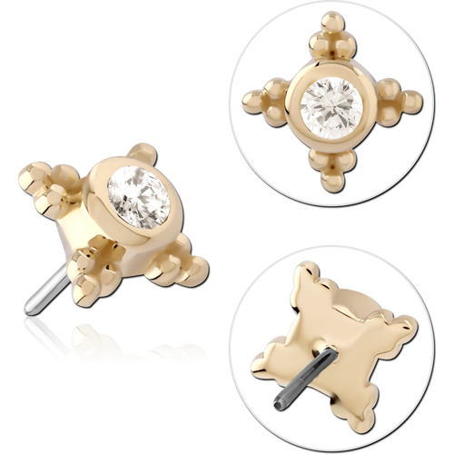 14 KARAT GOLD YELLOW JEWELED ATTACHMENT TITANIUM THREADLESS PIN