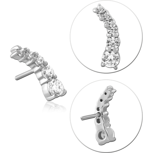 14 KARAT GOLD WHITE JEWELED ATTACHMENT TITANIUM THREADLESS PIN
