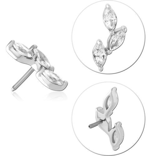 14 KARAT GOLD WHITE JEWELED ATTACHMENT TITANIUM THREADLESS PIN