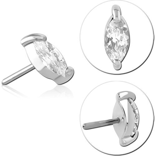 14 KARAT GOLD WHITE JEWELED ATTACHMENT MARQUISE CUBIC ZIRCONIA 4.0X2.0MM TITANIUM THREADLESS PIN