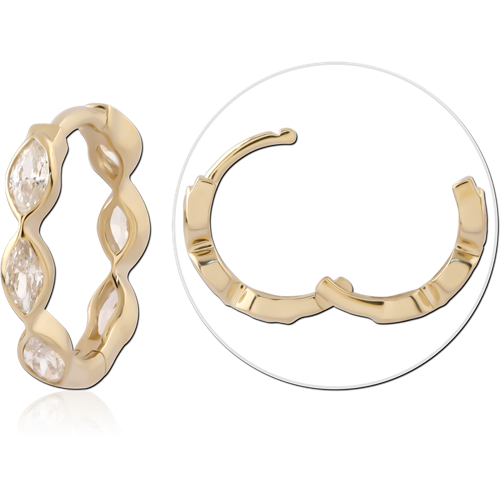 14 KARAT GOLD YELLOW HINGE SEGMENT RING MARQUISE GEM