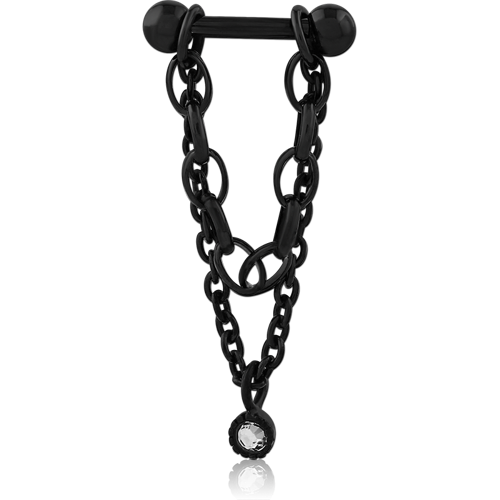 BLACK PVD COATED SURGICAL STEEL GRADE 316L TRAGUS MICRO BARBELL WITH CHAIN