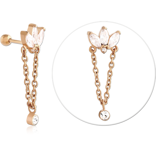 GOLD PVD 18K COATED SURGICAL STEEL GRADE 316L JEWELED TRAGUS MICRO BARBELL
