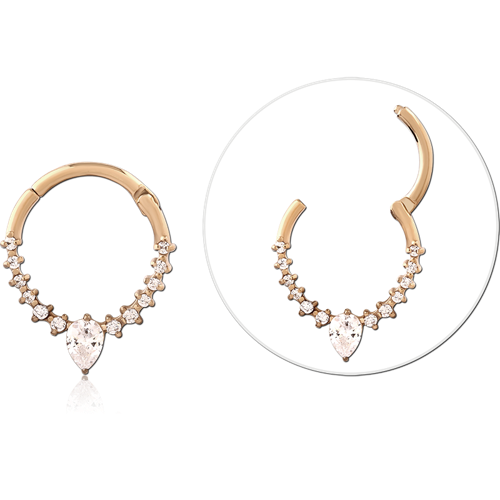 GOLD PVD 18K COATED SURGICAL STEEL GRADE 316L JEWELED HINGED SEGMENT RING