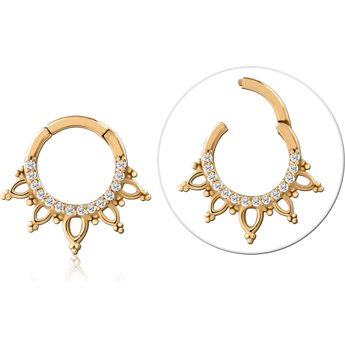 GOLD PVD 18K COATED SURGICAL STEEL GRADE 316L JEWELED HINGED SEGMENT RING