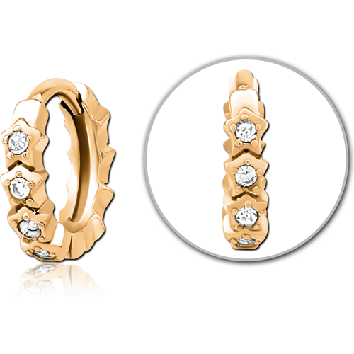 GOLD PVD 18K COATED SURGICAL STEEL GRADE 316L JEWELED MULTI PURPOSE HUGGIE PIERCING