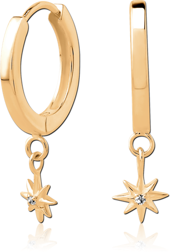 GOLD PVD 18K COATED SURGICAL STEEL GRADE 316L JEWELED MULTI PURPOSE HUGGIE PIERCING