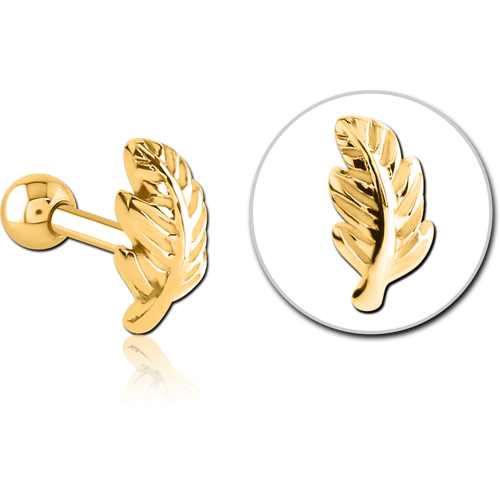 GOLD PVD COATED SURGICAL STEEL GRADE 316L TRAGUS MICRO BARBELL - LEAF