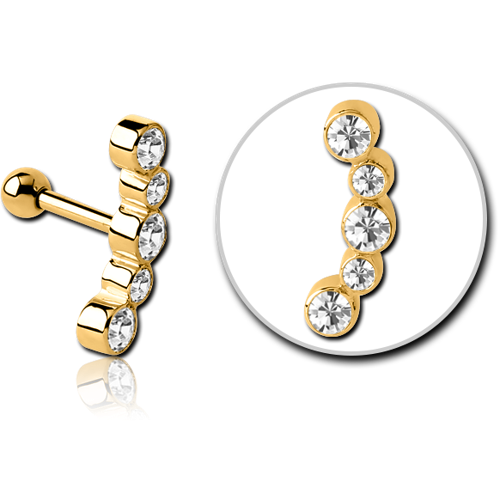 GOLD PVD COATED SURGICAL STEEL GRADE 316L 5 JEWELS TRAGUS MICRO BARBELL